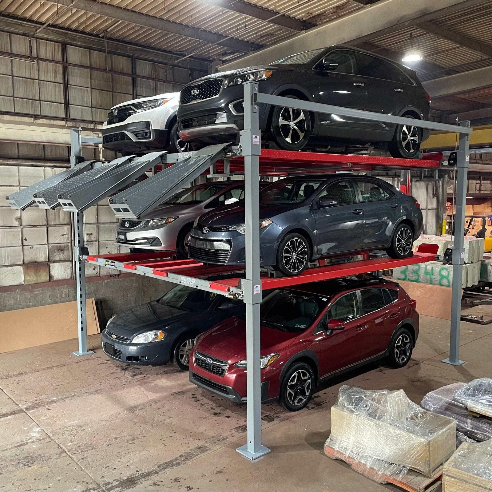 Advantage Double-Wide Triple Stacker | 6 Car Tri-Level 4-Post Lift