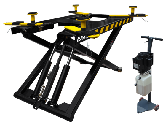 The AMGO MR06 is a 6,000-lb capacity scissor/low-rise lift designed for quick wheel service and alignment work. Scissor lifts require minimal ceiling height and are portable, making them perfect for home garages or mobile service operations.