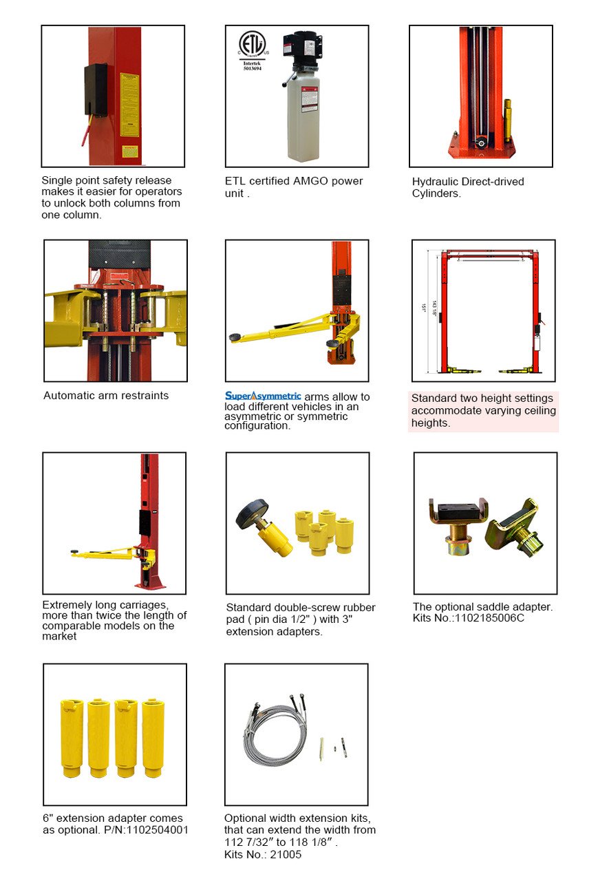AMGO® Hydraulics OHX-10H Ex-Tall Super-Asymmetric® 2 Post Lift 10,000 Lbs