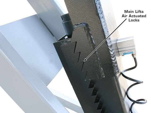Engineered with a multi-position mechanical safety lock system that allows the lift to be parked securely at various working heights, relieving hydraulic pressure for long-term safety and stability.