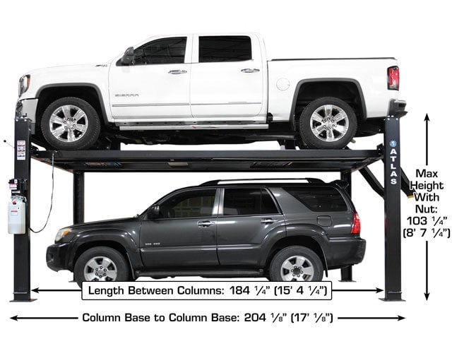 The Atlas APEX9 is a 9,000-lb capacity 4-post lift designed for home garage storage and light maintenance. 4-post lifts are the easiest to install and safest to operate, making them ideal for enthusiasts who want to maximize their garage space or store a second vehicle.
