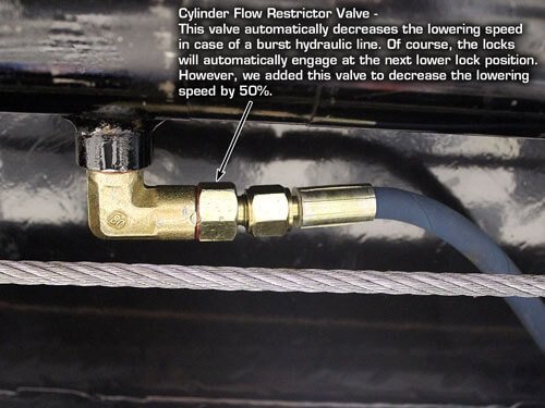 Equipped with a commercial-grade hydraulic cylinder concealed securely under the runway for maximum protection. The system features an integrated flow restrictor (velocity fuse) that ensures a smooth, controlled descent even in the unlikely event of a hose rupture. The electric-hydraulic power unit delivers consistent lifting power, achieving full rise in approximately 45–60 seconds depending on the weight load.