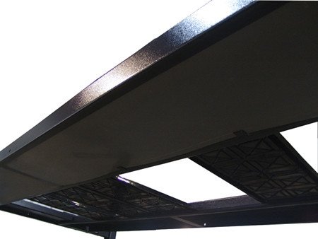 Equipped with a commercial-grade hydraulic cylinder concealed securely under the runway for maximum protection. The system features an integrated flow restrictor (velocity fuse) that ensures a smooth, controlled descent even in the unlikely event of a hose rupture. The electric-hydraulic power unit delivers consistent lifting power, achieving full rise in approximately 45–60 seconds depending on the weight load.