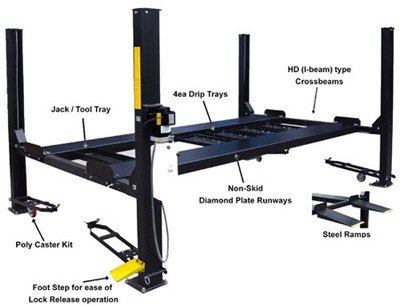 The Auto Lift AUTOLIFT-CAR-PARK-9 is a 9,000-lb capacity 4-post lift designed for home garage storage and light maintenance. 4-post lifts are the easiest to install and safest to operate, making them ideal for enthusiasts who want to maximize their garage space or store a second vehicle.