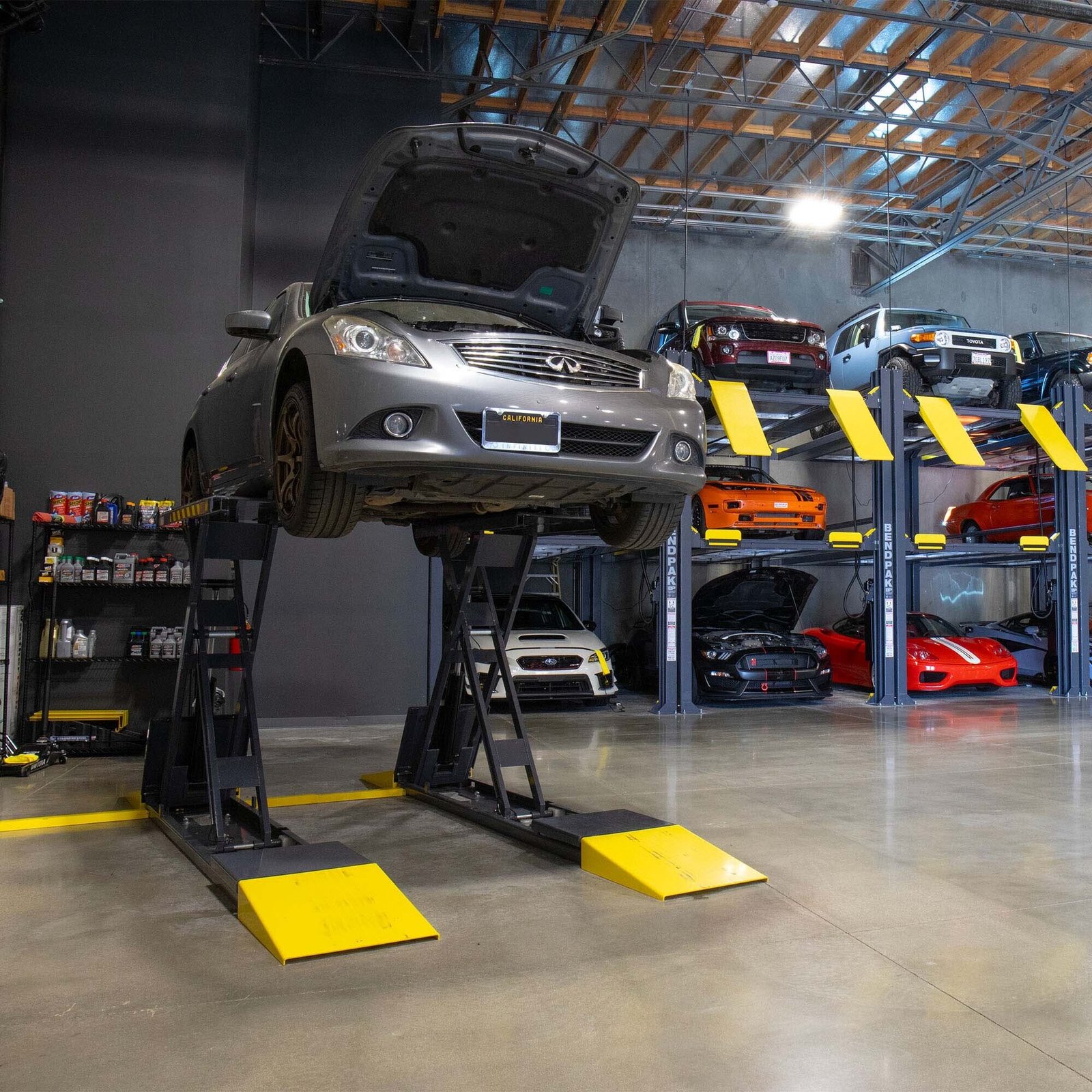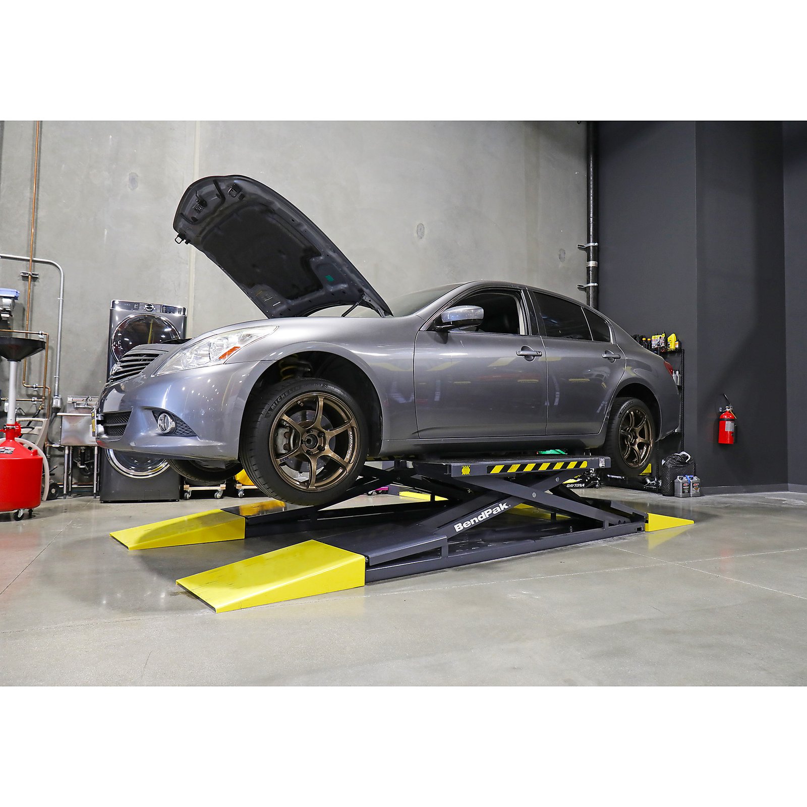 The BendPak SP-7XE is a 7,000-lb capacity scissor/low-rise lift designed for quick wheel service and alignment work. Scissor lifts require minimal ceiling height and are portable, making them perfect for home garages or mobile service operations.