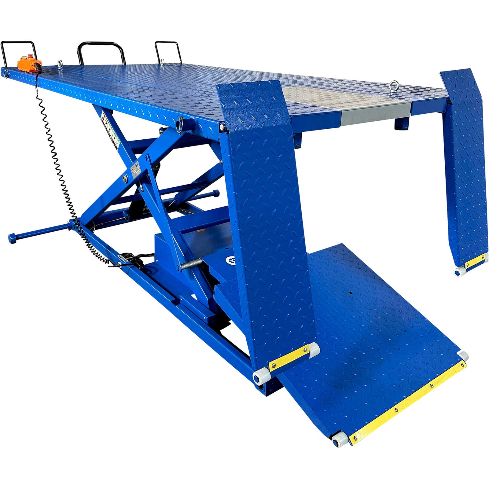 Equipped with a commercial-grade hydraulic cylinder concealed securely under the runway for maximum protection. The system features an integrated flow restrictor (velocity fuse) that ensures a smooth, controlled descent even in the unlikely event of a hose rupture. The electric-hydraulic power unit delivers consistent lifting power, achieving full rise in approximately 45–60 seconds depending on the weight load.