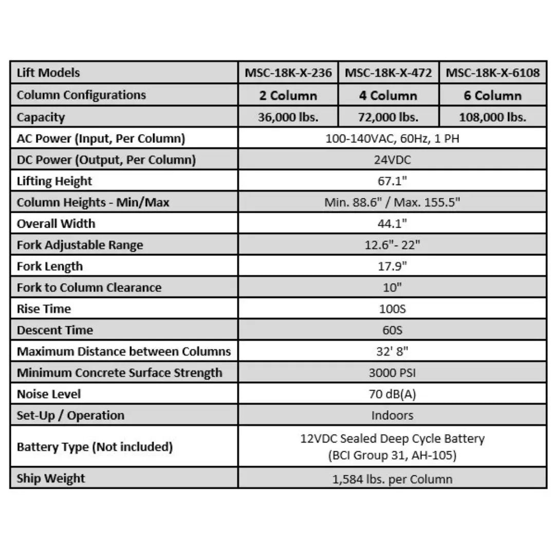 iDEAL MSC-18K-X-6108 Heavy Duty Mobile Column Lift (Set of 6)