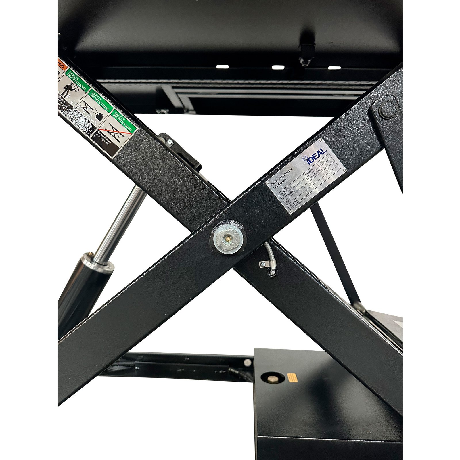 The iDEAL U-2200IEH-XR-BLK is a 2,200-lb capacity scissor/low-rise lift designed for quick wheel service and alignment work. Scissor lifts require minimal ceiling height and are portable, making them perfect for home garages or mobile service operations.