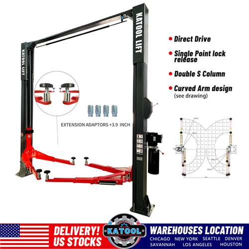The KATOOL KT-AS110D is a 11,000-lb capacity 2-post lift designed for professional-grade vehicle service. 2-post lifts provide full undercarriage access for suspension, brake, and exhaust work. This is the standard lift type found in professional auto shops worldwide.