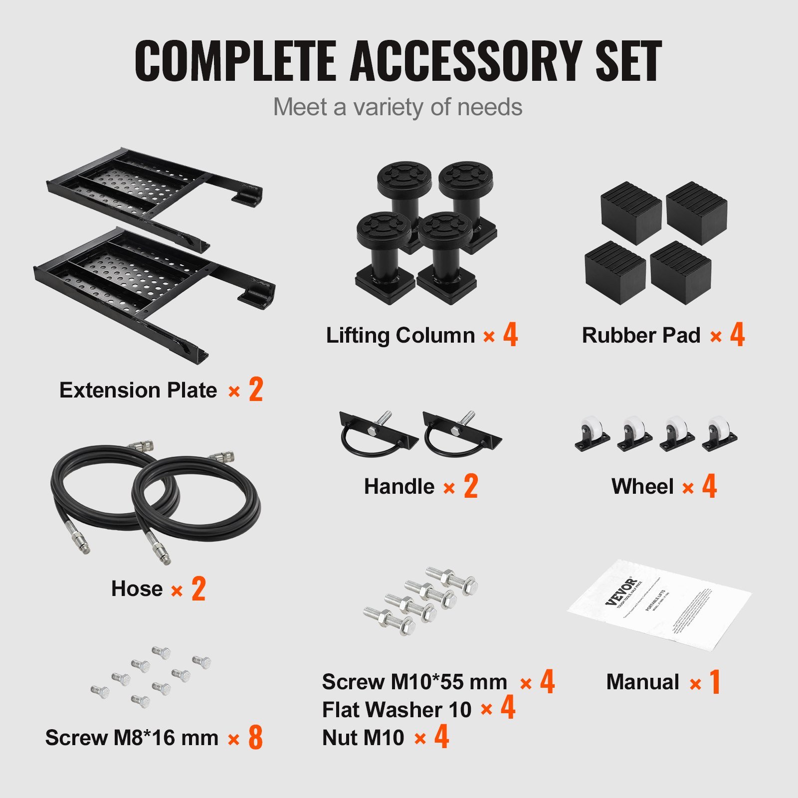 The VEVOR VEVOR_JT7000_7000LBS is a 7,000-lb capacity scissor/low-rise lift designed for quick wheel service and alignment work. Scissor lifts require minimal ceiling height and are portable, making them perfect for home garages or mobile service operations.