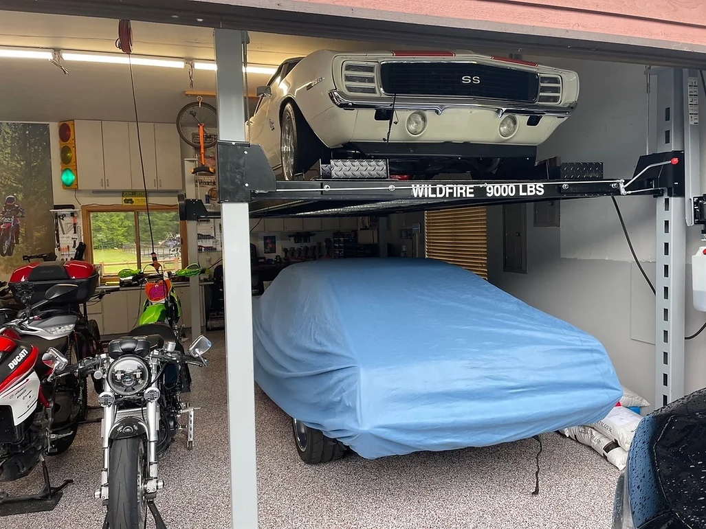 The Wildfire Lifts CLL-WSL-001 is a 9,000-lb capacity 4-post lift designed for home garage storage and light maintenance. 4-post lifts are the easiest to install and safest to operate, making them ideal for enthusiasts who want to maximize their garage space or store a second vehicle.
